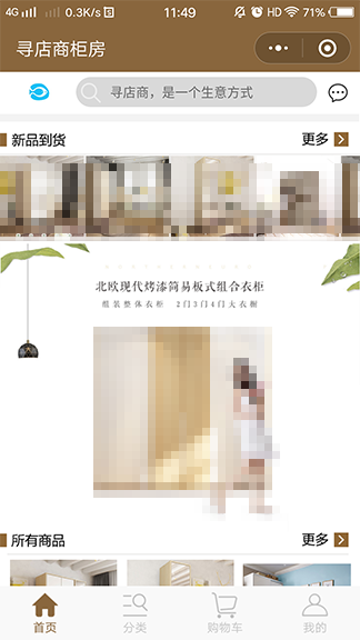 这是一款橱柜类商城的小程序,在页面设计布局上简单大气,主题颜色采用了与木头本身相似的颜色,更加能体现出商品的质量。