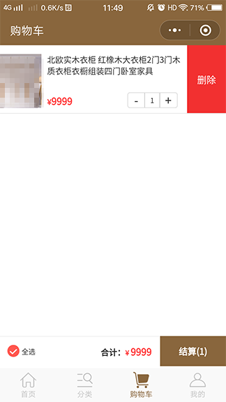 买家可以在购物车查看自己添加的商品,然后进行操作(购买或者删除商品);