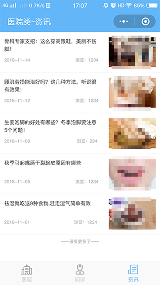 此页用来展示医院的一些相关资讯以及医学知识等,让用户增长一些见识;