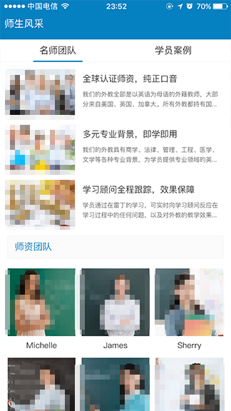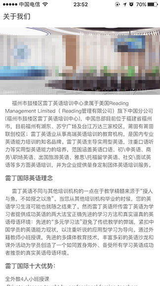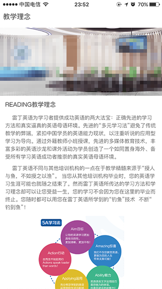 英语培训小程序,以展示为目的,主要是为了让人了解该机构的课程教授内容,师资情况,联系方式等内容。