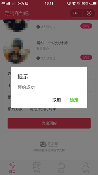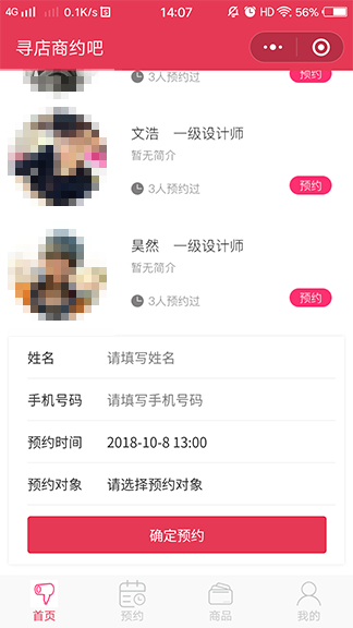 美发小程序,主要是通过展示达到促进用户进行预约的目的;商户还可发放优惠券促使用户到店消费;